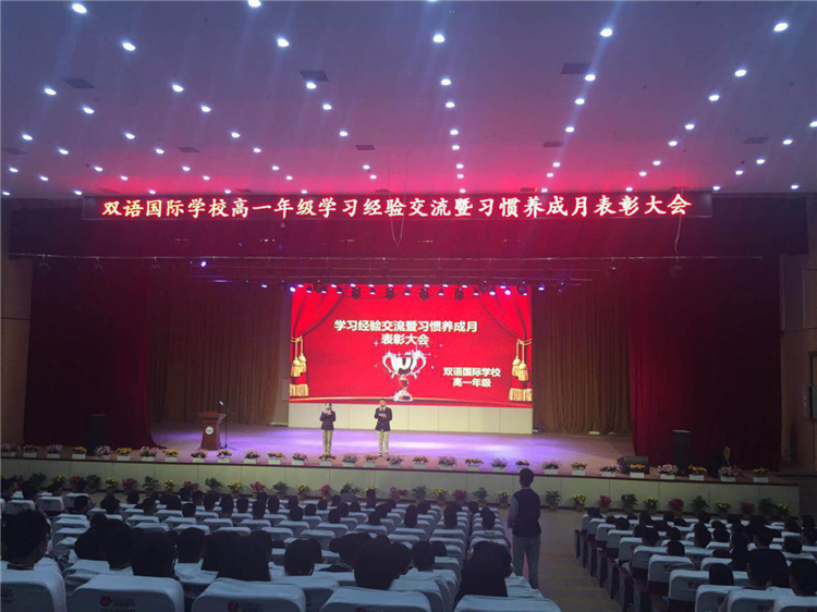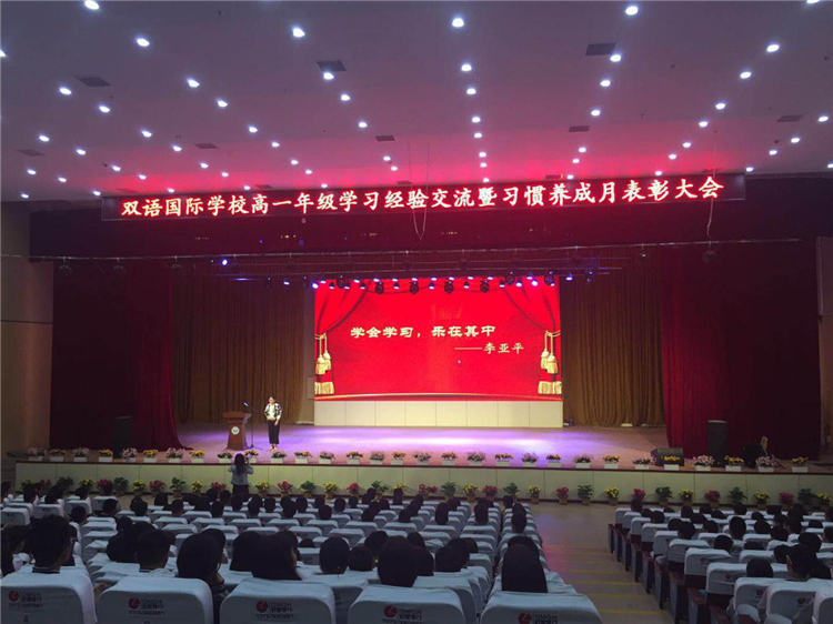 本次大会总结了习惯养成月的总体情况,并且表彰了在习惯养成月中表现突出的同学和团体。大会分为视频集锦播放、学习经验交流、习惯养成表彰和领导致辞四个部分。