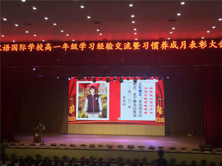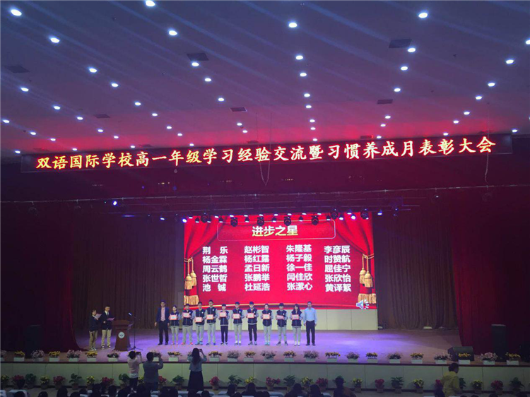 怀着满腔的喜悦,4月10日下午4:30,我校高一年级学习经验交流暨习惯养成月表彰大会在剧场隆重举行。
