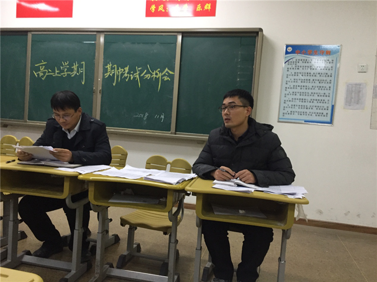 随后,年级主任胡腾飞对高二年级各学科进行科学的质量分析。从考试的组织与阅卷情况、各班各科平均分和及格率区排名变化、各班各学科的变化等方面,分析教与学的优势和存在的问题,总结经验,找出差距,并提出针对性的改进意见。高二年级各个学科代表也分别针对这次考试做了深入的分析,并分享了成绩提升的经验。他们基于学情,立足基础,精心规划,分层教学,辅导针对,想方设法提高各层次学生的成绩。
