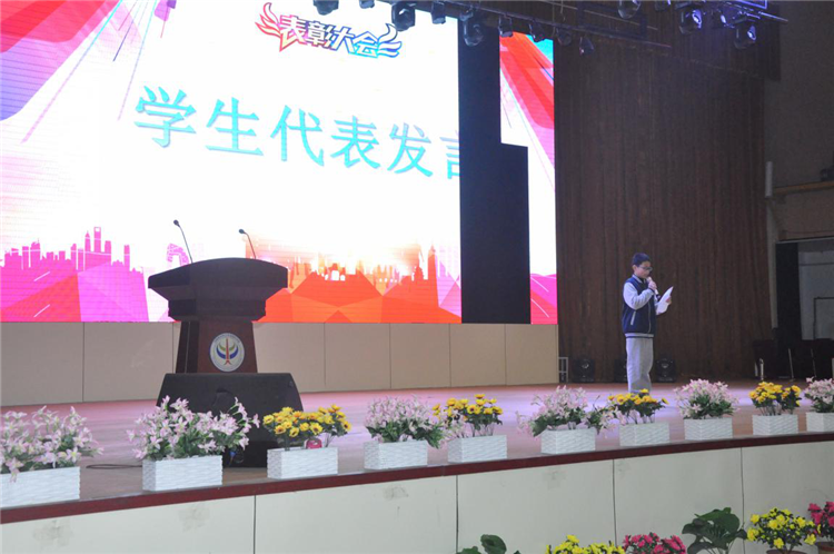 此次表彰大会,必将激发同学们争先创优的意识,掀起学习的高潮。今后将会以坚定的信念,饱满的热情,认真的态度,辛勤的付出,实现新的跨越,创造新的辉煌,让追求卓越的脚步永不止息,用智慧和汗水去实现自己的理想,为人生添彩,为学校争光!