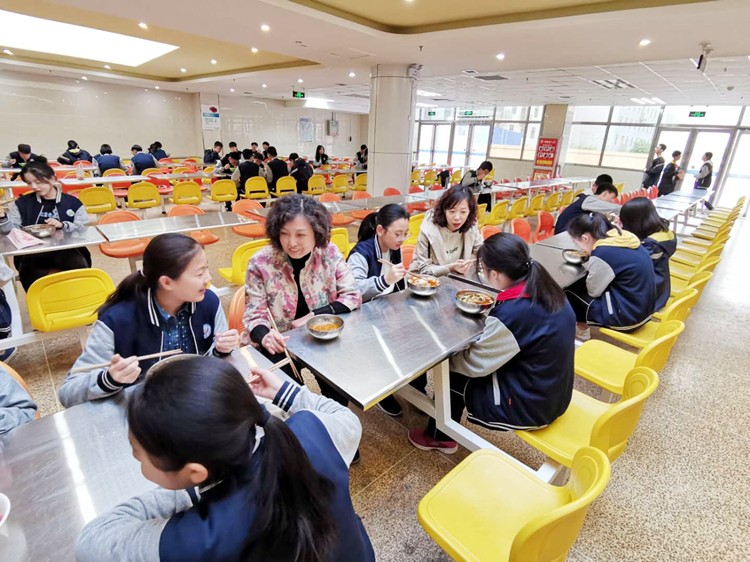 检查后,教育局领导与师生共进晚餐,与学生和餐饮管理人员座谈交流。