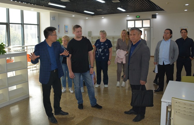 首先,考察团在教育局副局长刘建学、我校副校长罗强等领导的陪同下参观了校园,罗校长向外国友人介绍了学校的基本概况,谢尔盖校长还在卓人塔前驻足拍照。 参观结束后,宾主双方在我校第一会议室进行了友好座谈。座谈中,两校分别介绍了学校概况、师生情况、教学特色、教育目标等,之后就未来的两校合作进行了广泛探讨交流并签署了合作协议,俄方教师还到我校俄语课程班与学生们进行了互动交流。