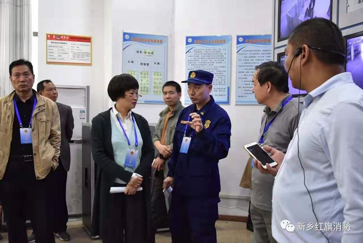 2019年10月24日下午,红旗区人大常委会主任史晓玲带领区人大常委会部分组成人员对我校“智慧消防”工作进行视察调研,红旗区政府副区长邵自卿、红旗区消防救援大队教导员刘欣哲陪同视察,副校长罗强以及安全办主任李卫忠给予热情的接待。