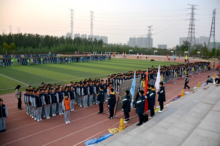 1022下午我校学生们翘首以盼的中学生秋季田径运动会开幕式在我校操场隆重举行。中学部全体学生在班主任的带领下迅速、有序地在操场跑道列队集结,滑秀林校长等校领导出席开幕式,老师及家长代表等驻足看台观看,开幕式由郭学明主任主持。1_副本