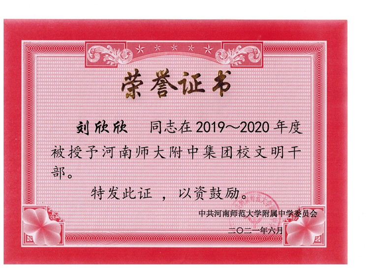 热烈祝贺我校刘欣欣老师被评为附中集团校级文明干部,李翔、冯智昊、张文静、杨慧诺、陈辉阳、刘淑芳、王彬、刘龙等老师被评为附中集团校级文明教师,李明亮、李靖老师被评为附中集团校级文明职工。