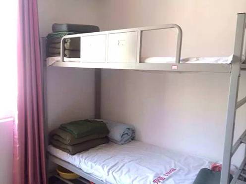 用餐完毕后,生活老师带领学生走进公寓大厅,穿过明亮干净的走廊,来到温馨舒适的宿舍,宿舍属四人间,每个学生都拥有一个专属于自己的橱柜、桌椅,配有独立卫浴,四季供有地下热水。