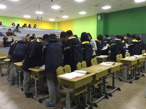 下午第四节课是全校的公共自习,因此全体领导和教师齐聚录播教室,观摩、评议、学习这节探索课。