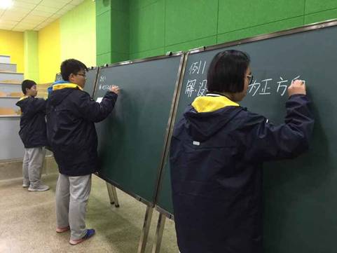 展示完毕之后,老师挑选其他小组的学生进行评议,重点关注书写的板书、规范程度、解题步骤等,并以“小老师”的身份进行讲解、打分,培养学生分析问题、解决问题的能力。