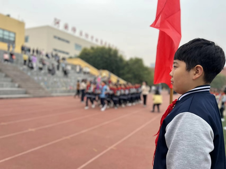 2022年10月14日上午,秋风爽朗,彩旗萦绕。操场上站着一个个整齐的方阵,是等待开运动会开幕式的小学生们。他们昂首挺胸,快乐又兴奋,他们目光坚定,期待又自信。