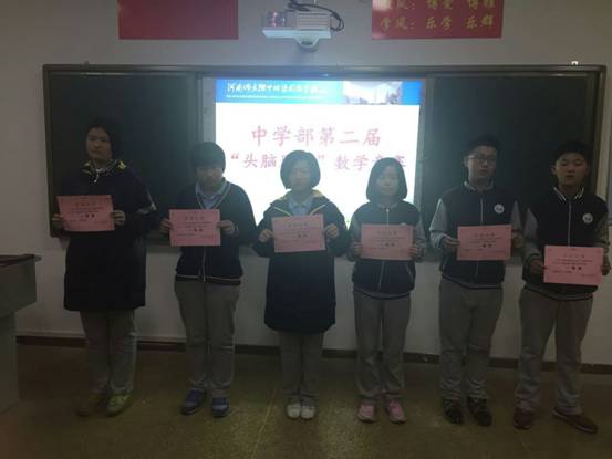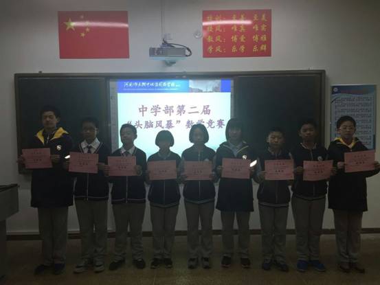 11月4日,紧承第一届头脑风暴的热潮,河南师大附中双语国际学校初一年级第二季“头脑风暴”数学竞赛有声有色地展开了,这一次针对学生的计算能力有了更高的要求。难度上比上次也有增加,大赛分初赛和复赛两轮进行。经过一番紧张的选拔,最终角逐出特等奖九名、一等奖六名、二等奖十六名、三等奖二十二名。通过这次比赛,同学们学习数学的兴致日趋高涨,表示要争做数学先进。