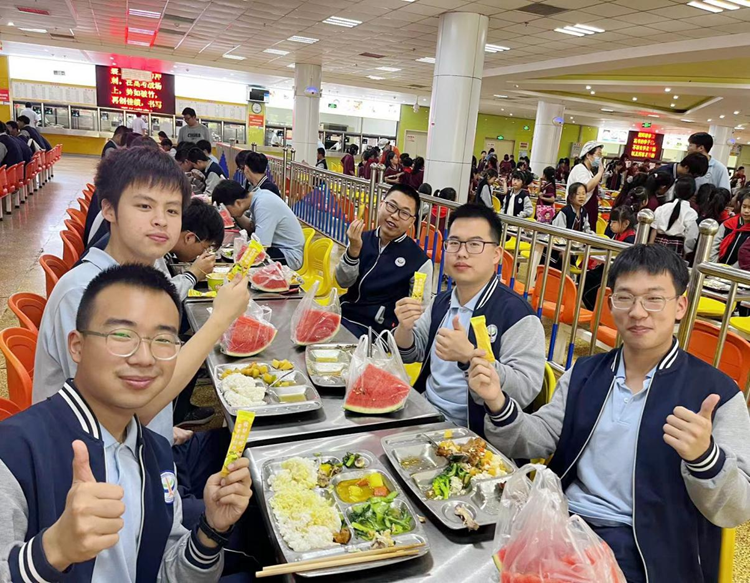 爱心护航,学校后勤在行动。餐厅电子屏滚动播放的励志标语、餐厅门口的条条加油横幅、一道道精心准备的美味菜肴,一块块清凉可口的西瓜、一张张祝福贺卡,无不体现我校后勤爱护学子、助力高考的一片真情。6月5日,意气风发的高三学子在全体师生的欢呼声中,接过祝福贺卡,在各位校领导和全体高三教师的祝福鼓励下,自信满满迈向新的征程!