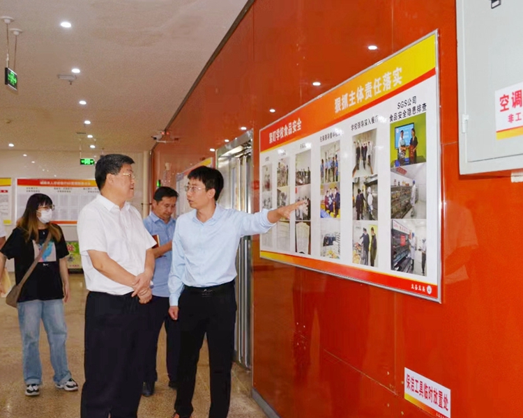 接着,窦副市长带领督导组深入餐厅,重点督查学校食品安全管理体系建设、应急处置措施、食品安全和培训和主体责任落实等情况,食品安全专管员路国伟向督导领导进行详细汇报和介绍,督导组对我校餐厅在“日管控、周排查、月调度”工作机制落实、6S精细化管理和员工培训等方面给予高度评价。