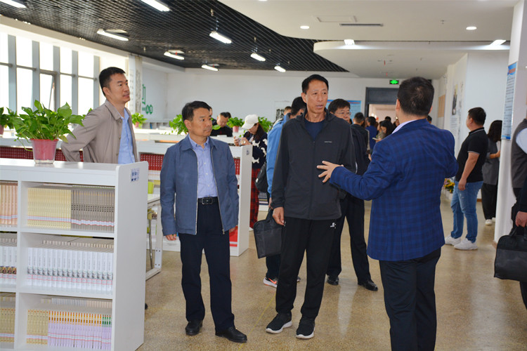 考察团参观我校文化成果展示区,驻足于“状元墙”,对我校取得23届新乡市中考第一名的成绩表示赞许,为我校师生点赞。在新乡市总工会授牌的“职工书屋”,大家翻阅各类图书资料,听闻滑校长捐书的感人事迹,对“秀林国学书屋”赞誉有加。在工会活动室,展示了学校工会工作的档案文书管理工作,相关文字、图片和影音资料,内容丰富,大家纷纷拍照,学校荣获省级基层工会规范化建设示范点是名至实归。