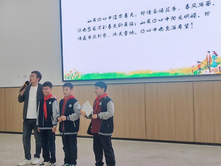 为了让学生更好地认识自己,树立正确的人生观和价值观,提高综合素质和社会责任感,2024年4月14日,刘新选家庭教育名师工作室邀请到爱自然生命力中级导师、国家二级心理咨询师、绘画心理分析师张晓伟老师走进校园,为小学部五年级学生开展了一场以“好品格 好成绩 好人生”为主题的公益讲座,活动由张蓝老师主持图片1