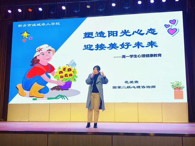2025年3月5日下午,新乡市诚城卓人学校面向高一年级举办了一场主题为“塑造阳光心态,迎接美好未来”的心理健康教育活动。此次活动由我校教师发展中心和高中部联合举办,旨在帮助学生在高中阶段保持积极心态,合理规划学业与生活,迎接未来的挑战。学校领导高度重视并出席了本次活动。