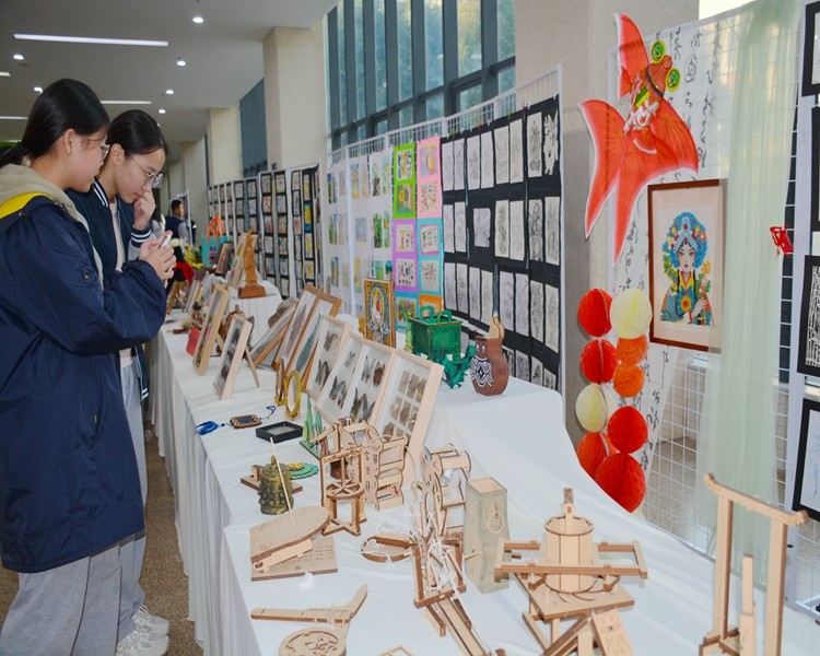 开幕式后,五大特色展区同步解锁,各学段师生错峰打卡,沉浸式铺就多元融合的美育长卷!行政楼艺术静展专区,百余件绘画、手工、摄影、设计作品惊艳亮相,每一件都藏着学子的奇思妙想与硬核功底;行政楼大厅音乐展演,古典旋律与现代节拍碰撞,钢琴、古筝、吉他轮番登场,奏响青春限定乐章;文化广场特色雅集,茶艺氤氲、墨香四溢、民乐悠扬,沉浸式解锁中华传统文化的全新打开方式;南广场连廊T台秀,学子身着创意服饰自信走秀,个性穿搭与超模气场引爆全场,演绎Z世代的青春态度;街头文化展上,轮滑炫技、街舞炸场,运动活力与艺术创意双向奔赴,燃动校园每一个角落!