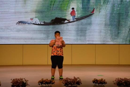 下午4:30左右,家长们已陆陆续续到达学校,剧场外的走廊上早已摆好了学生们在兴趣课期间的优秀书法和绘画作品展。下午5:00,兴趣课汇报演出在庄严的升旗仪式中拉开帷幕,全体师生起立向五星红旗致敬。之后全体人员共同回顾了这七天兴趣课期间的点点滴滴,有活力四射的篮球课、乐趣多多的外教口语课、优雅多姿的形体舞蹈课以及孩子们在餐厅用餐、操场游戏、宿舍住宿等相关生活场景……光与影的变化,情与景的交融,满满的都是成长与感动。虽然一个班的同学仅仅相处了7天,但是仍然在同学们之间建立了真挚的友谊,在照片播放过程中,不少同学的眼角已泛着晶莹的泪光。