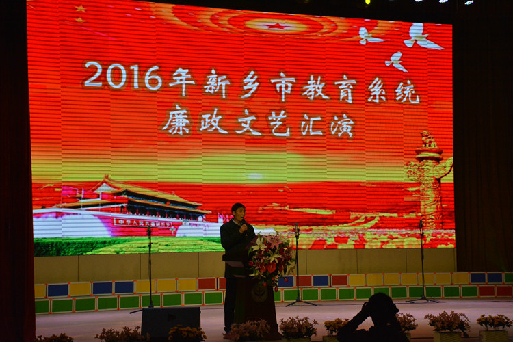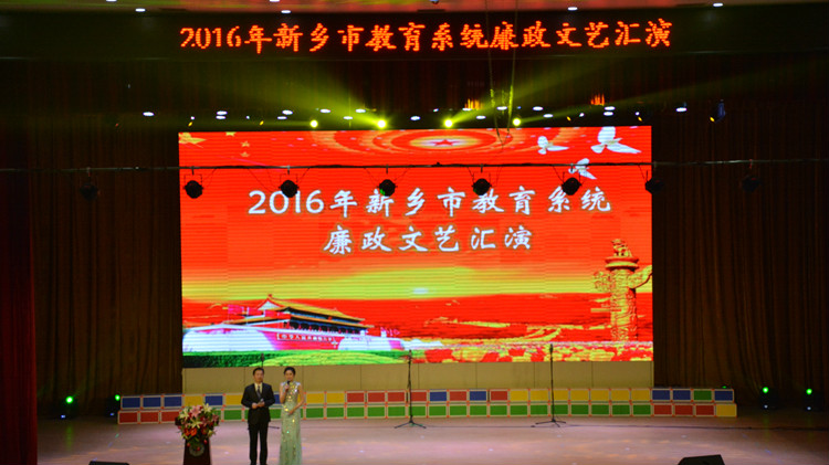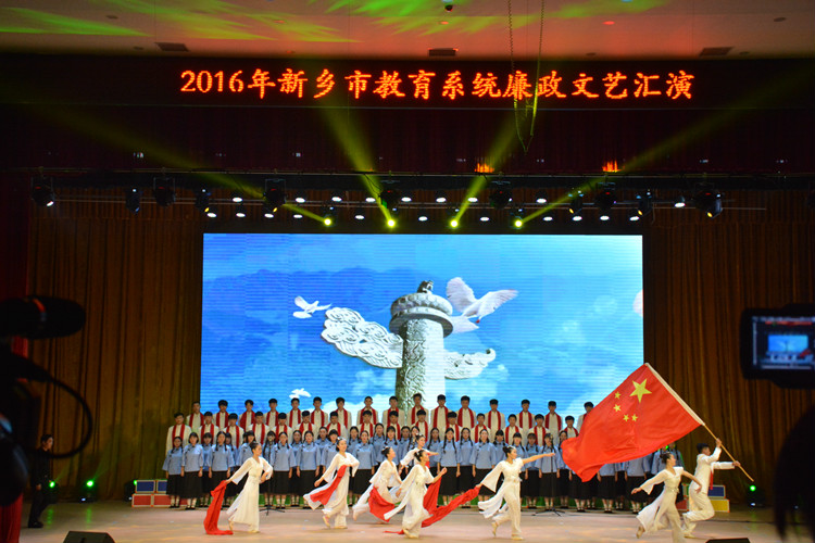 11月3日,由新乡市教育局主办的新乡市教育系统廉政文艺汇演在我校剧院举行,市纪委、市教育局领导及各县区教育局和相关学校负责人观看了演出,活动取得了圆满成功。与会领导对我校宽敞大气的剧院,高端完善的设施设备,周到细致的筹备服务给予了高度赞扬。下图为演出现场