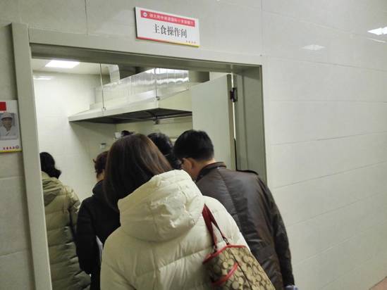 随后,我校校领导与委员会成员一起参观了食堂情况,对食品存放、制作、消毒情况都进行了观察与体验,家长成员们对学校食堂整体卫生安全管理方面给予了高度的肯定。