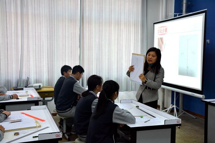 413日,直淑静老师在C314物理实验室为高二2班学生讲解《探究力的平行四边形定则》课题。