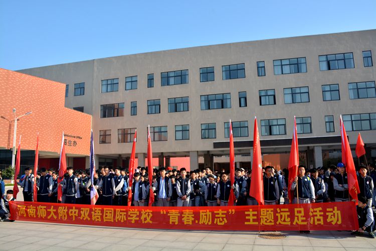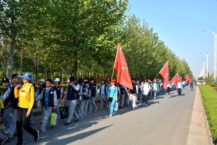 早晨7点30分,师生齐聚学校国旗广场举行了启动仪式,全体学生面向国旗庄严宣誓,中学部宋玉亮主任做了动员讲话,他号召大家发扬奋勇拼搏、自强不息的精神,勇于挑战自我,胜利完成这次远足励志活动。仪式结束,每个班级在班主任和跟队老师的带领下排着整齐的队列向目的地进发。行进途中学生们进行了文明参与交通、安全参与交通宣传教育,家长和老师也参与到安全护岗行动,十一点左右,师生到达终点——平原湖,并在平原湖驻足拍照留念,并以游戏活动形式开展文明、节俭习惯养成教育。之后大家来到河南师大新联学院餐厅就餐,下午16点30分,全体师生安全有序返回校园。