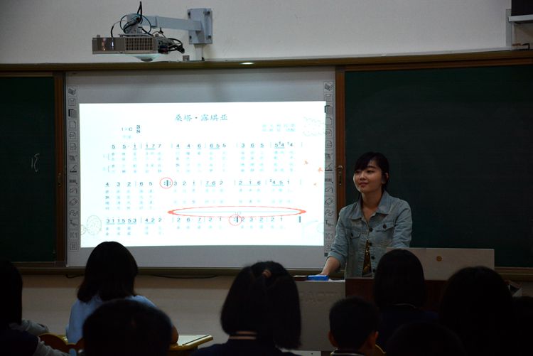 张祺老师通过课堂让学生们积极参与欣赏、演唱《桑塔.露琪亚》,学生们能够感受、体验歌曲的音乐情绪及风格,并对欧洲民间音乐感兴趣。并能够用圆不同的方式演唱《桑塔.露琪亚》。