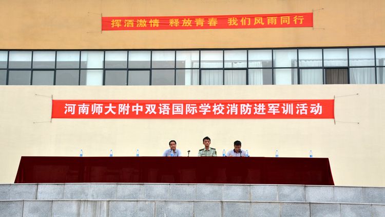 深入贯彻落实夏季消防安全大培训活动及消防进军训工作方案,8月17日下午,附中双语国际学校消防演练“进军训活动在我校操场举行。