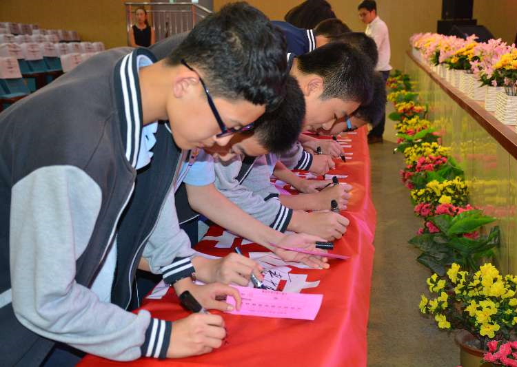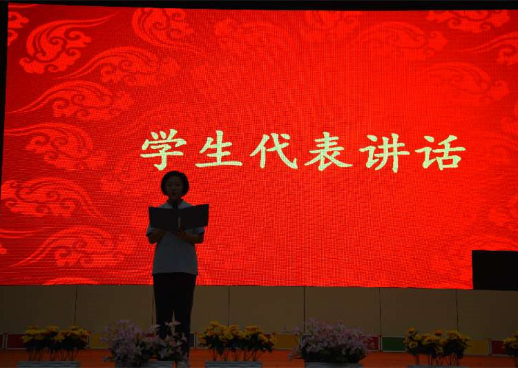 初三年级主任刘欣欣作为教师代表发言,她从一个北大学子的心路历程开始讲起,告诉大家:实在坚持不下去了,再坚持一下,就能走向成功。激励同学们努力学习,努力进步。初三(4)班李力先家长作为学生家长发言,细数了孩子两年来的进步,表达了对孩子成长的殷切希望。初三(3)班丁美戈同学代表同学们也向领导老师和家长们表达自己的决心,同时表达了奋斗三百天再创新辉煌的志向。接下来,各个班分别宣誓,在高昂的宣誓声中,大家的热情达到了高潮。所有的老师和学生在中考激励条幅上签上字,并且每个学生把自己填好的中考激励卡放进了心愿箱。罗强校长最后发言,表示细节决定成败。希望大家能够踏踏实实,再创佳绩。