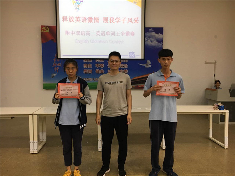为了激发学生学习英语兴趣,丰富词汇量,提高学生英语综合素质,给学生提供一个展示自我的平台,高二年级开展了以“释放英语激情,展我学子风采”为主题的英语单词王争霸赛。本次大赛共分为激情团队赛、活力小组赛和魅力个人赛三个环节。