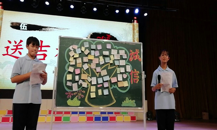 为深入贯彻落实党的十九大思想,大力培育和践行社会主义核心价值观,弘扬中华民族的传统美德,提高全体师生诚实守信的自觉意识,培养学生诚实待人、守时、守信的高度责任心,河南师大附中双语国际学校初一年级于2018年6月19日下午在校剧场举行了社会主义核心价值观之“诚信大讲堂”主题活动。