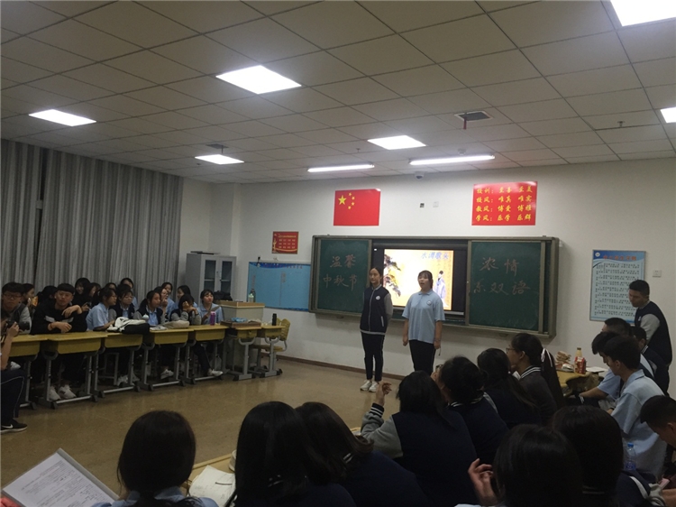 本次活动可以以班级为单位,也可以两个班级合办,在教室内进行。活动形式丰富多彩,有的班级开展以中秋为主题的诗歌朗诵比赛,并组织同学们进行与中秋节有关的诗歌创作活动。同学们精彩独到的朗诵形式,掀起一个又一个的欢乐浪潮,精彩纷呈的活动让同学们在一起度过了一个欢乐而有意义的中秋佳节。