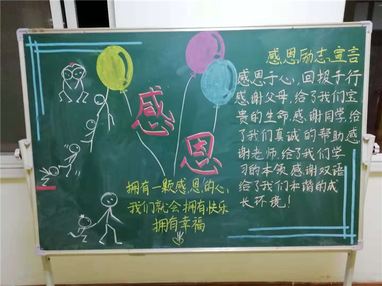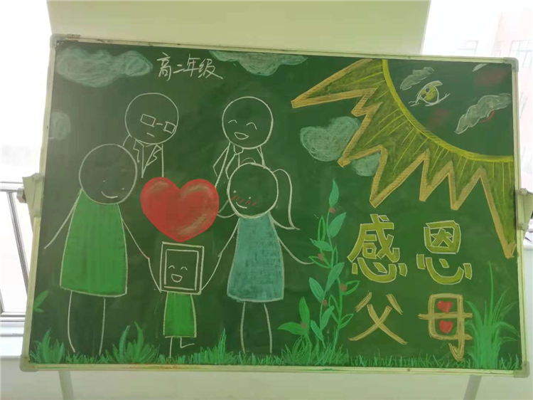 第一个环节是板报宣传,由高二年级各班做出板报,做好感恩宣传。学生办的黑板报内容丰富、图文并茂,吸引了不少同学来围观,让学生们深切体会到感恩的含义,明白爱的沉静和伟大。