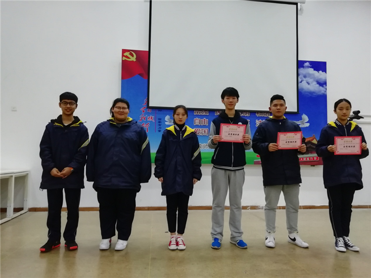 本次比赛共设一等奖3名,二等奖3名。经过激烈的角逐,最终高二6班郭一霖同学、高二7班杨宗宇、高二9班李响荣获一等奖,高二3班段为天、高二4班王鲲鹏、高二8班马永谋获得二等奖。武金一、周辰光等同学获得了最佳组织奖。