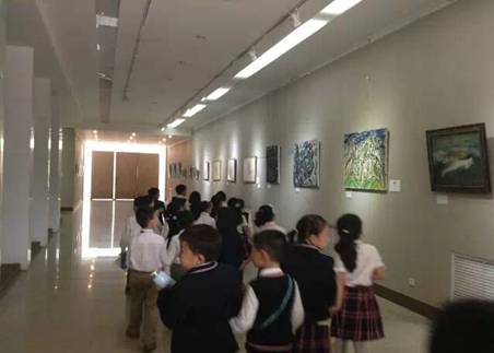 在展厅,孩子们先后欣赏了草书、隶书、楷书等优秀书法作品、摄影作品、油画作品。徜徉于艺术的海洋中,孩子们倍感新奇而又井然有序。展览中的每一幅作品都让孩子们感受着艺术的博大精深与无限魅力。他们有的一边欣赏作品,一边询问老师们关于作品的信息,眼神中充满了对艺术的向往。